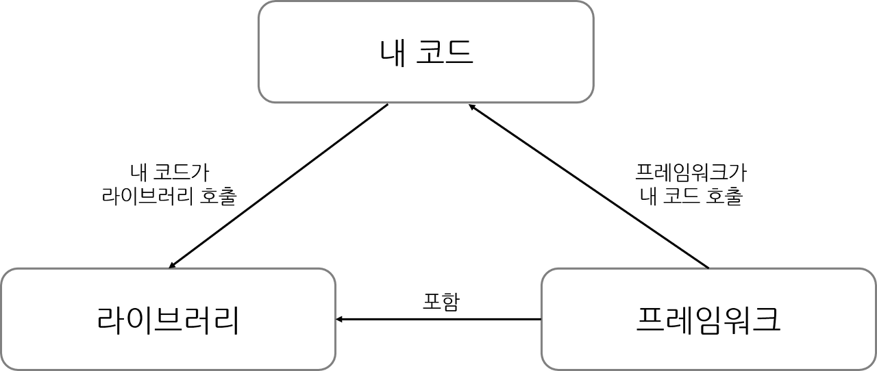 라이브러리는 특정 기능을 수행하는 코드의 집합을 말하며, 개발자가 필요에 따라 호출하여 사용한다. 라이브러리는 개발자가 프로그램의 흐름을 제어하면서 필요한 시점에 적절한 라이브러리를 호출하여 사용한다.