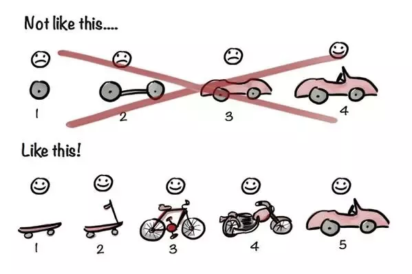 애자일 방법론은 점진적인 개발 프로세스를 따른다. 폭포수 방법론을 짧은 주기(스프린트)로 나누어 개발하는 방법이다. 보통 2주~한 달 단위의 짧은 마일스톤 안에 요구사항 정의, 설계 및 디자인, 개발 및 구현, 테스트까지 거치며 눈에 보이는 결과물을 보면서 더 좋은 제품으로 지속적으로 발전시키는데 중점을 두는 방법론이다. 애자일 방법론은 고객 협력과 피드백을 중시하기 때문에 요구사항이 유동적일 때 유용하며, 작은 규모의 프로젝트에 적합하다.