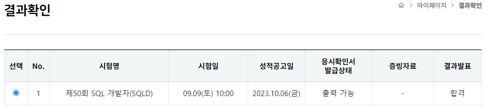 개발자가 되기로 마음먹고 처음으로 취득한 자격증인만큼 개인적으론 특별한 의미를 가지는 SQLD 자격증이네요.