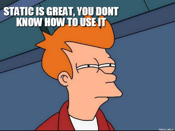 마지막으로 static 키워드는 객체와는 관계없이 클래스 자체에 속하는 메서드 혹은 모든 인스턴스가 공유하는 속성 값을 말한다. 이를 통해 해당 클래스로 만들어지는 객체 사이에서 중복되는 메서드, 속성을 효율적으로 정의한다. 예컨대 속성을 static으로 정의하면 각 인스턴스가 생성될 때마다 초기화되지 않고 유지되며, static 메서드는 클래스 자체에 정의되어 객체 생성 없이도 작동하며, 비슷한 기능을 가진 메서드를 각 인스턴스마다 반복 정의할 필요가 없다.