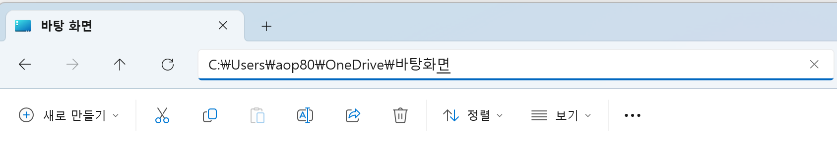 이런 식으로 OneDrive 다음 Desktop이 아니라 바탕화면이라고 되어 있는데, 아마 MS 계정 동기화를 사용해서 그런 것 같다. 애초에 로컬로 컴퓨터 설정을 진행했으면 Desktop으로 폴더명이 설정된다는 이야기를 들었다.
